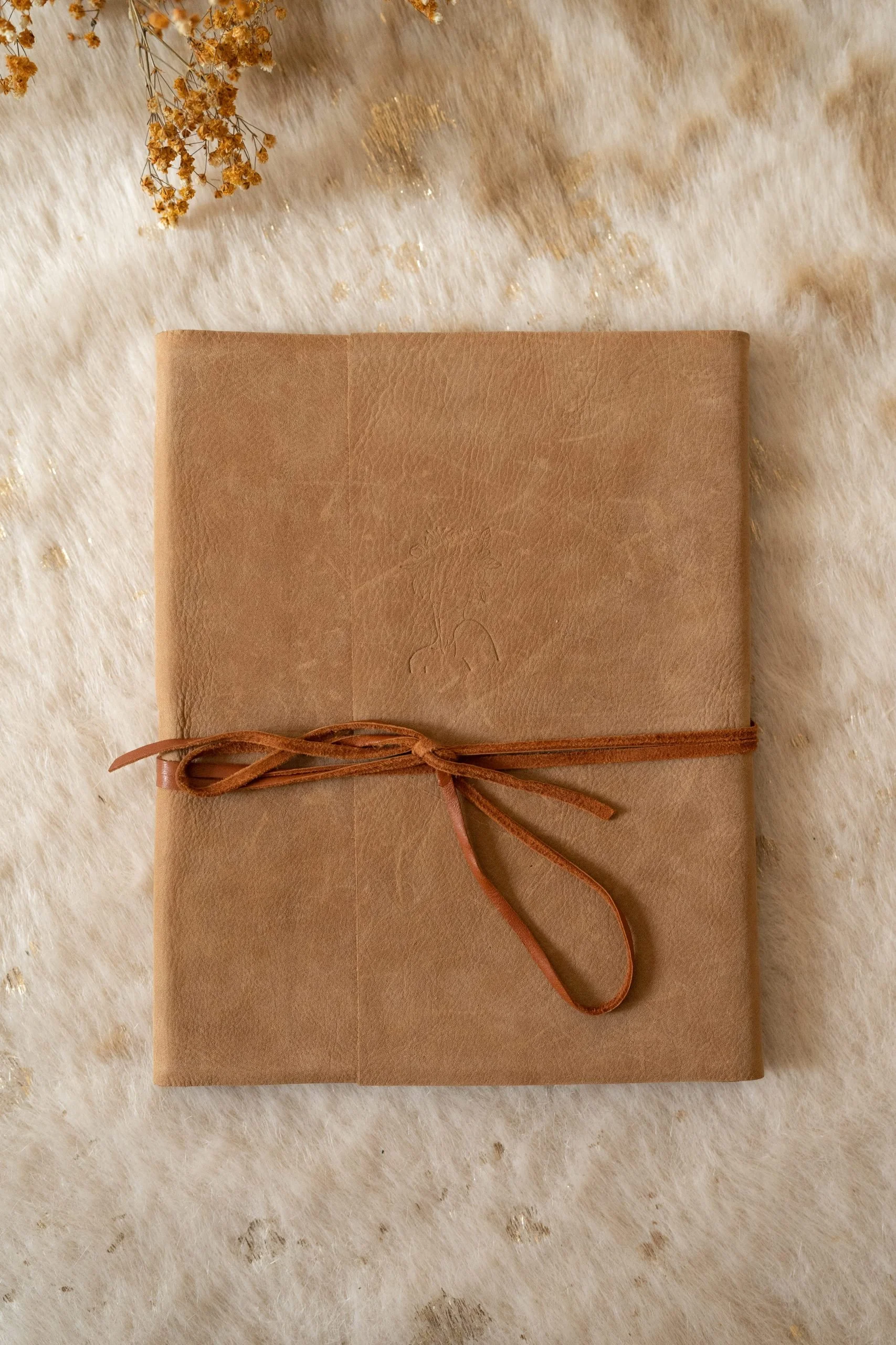 8x10 GENUINE LEATHER JOURNAL ALBUM WITH LEATHER TIE AND FOLDING COVERS